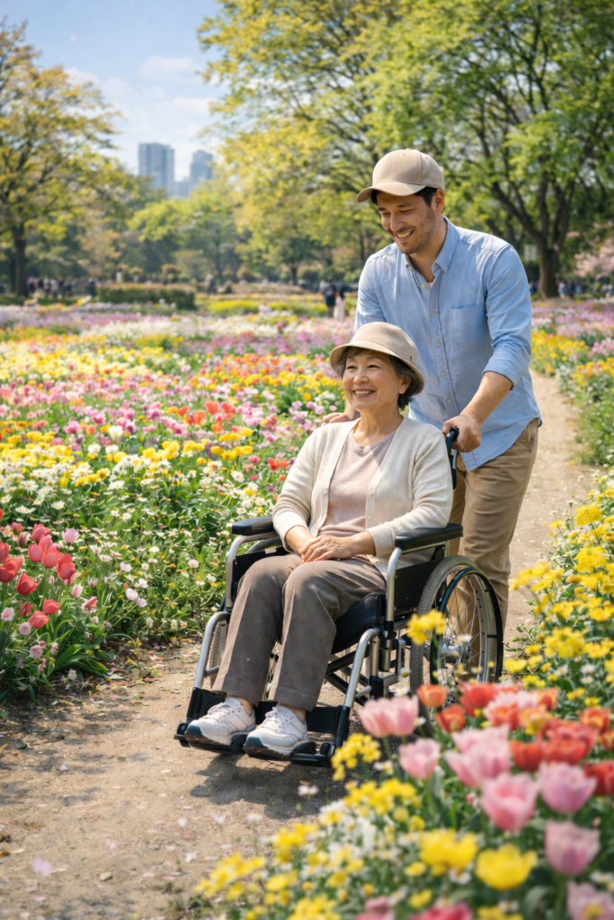 でも休みの日、公園に連れていき車椅子で散歩するときはトイレ間に合うんだあよなぁ